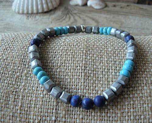 Bracelet Fin Turquoise Lapis Lazuli Et Hematite Bracelet