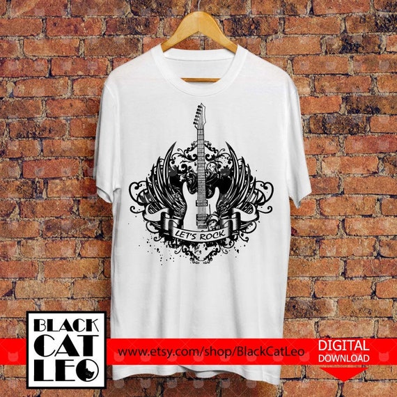 Hard Rock Vector Grunge T Shirt Tattoo Design Heave Metal Music Clip Art Let S Rock Wall Decor Music T Shirt Design Guitaron Wings Patterns