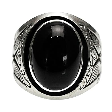 Mens Rings Stainless Steel Black Natural Stone Finger Ring