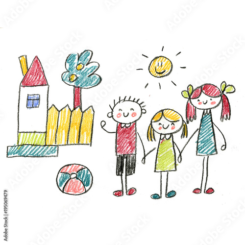 Childrens Drawing Happy Family About Small Stock Illustration 47001799