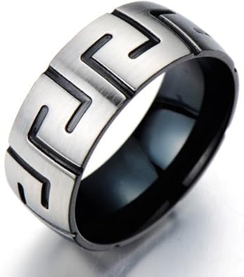 Acier Inoxydable Anneau Bague Bague Argent Noir Grecque