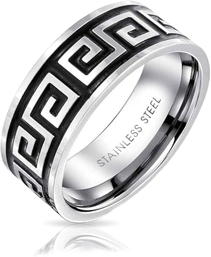 Motif De Cle Grecque Bague Homme Anneau Acier