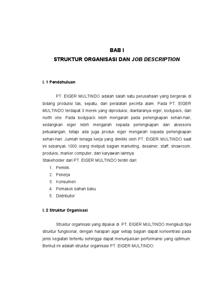 Contoh Struktur Organisasi Dan Job Description Perusahaan