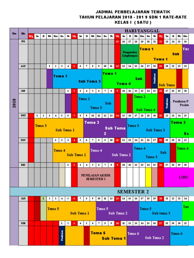 Jadwal Pelajaran Tematik Kelas 1 6 Sd K13 Tahun Pelajaran