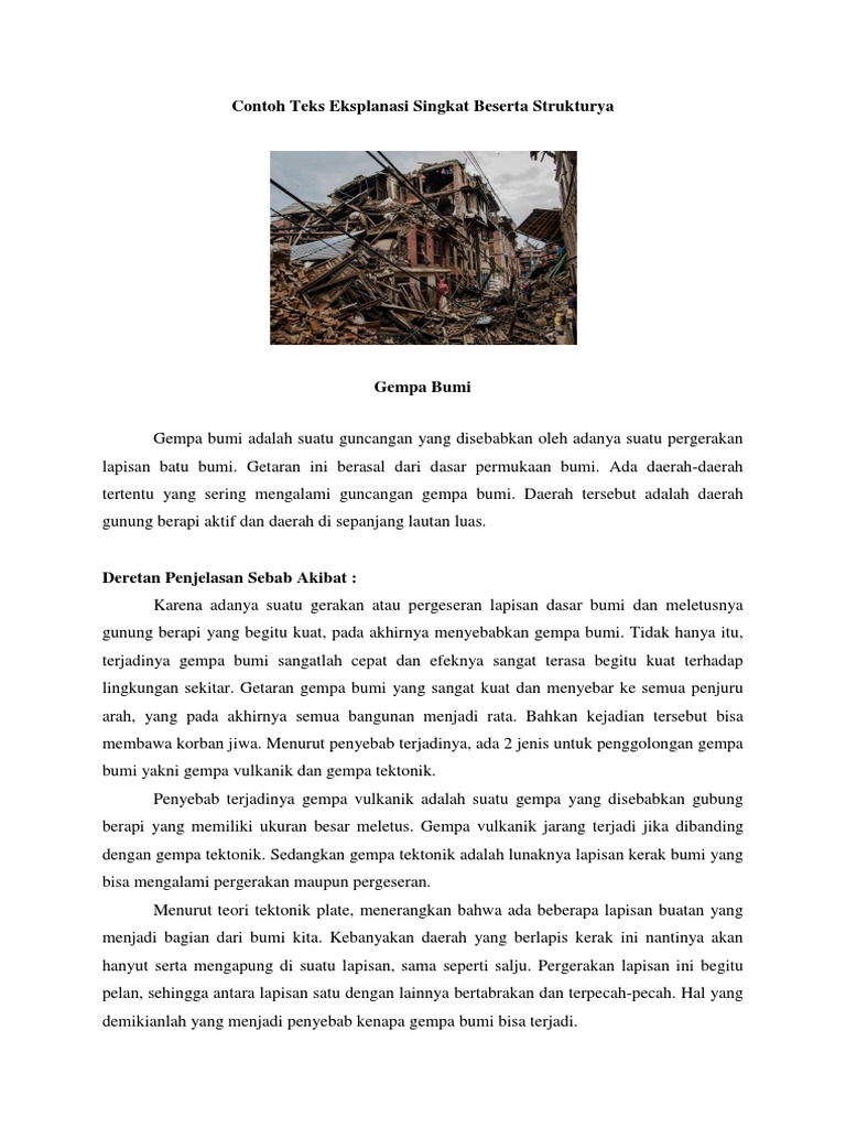 Contoh Teks Eksplanasi Singkat Beserta Strukturya Gempa