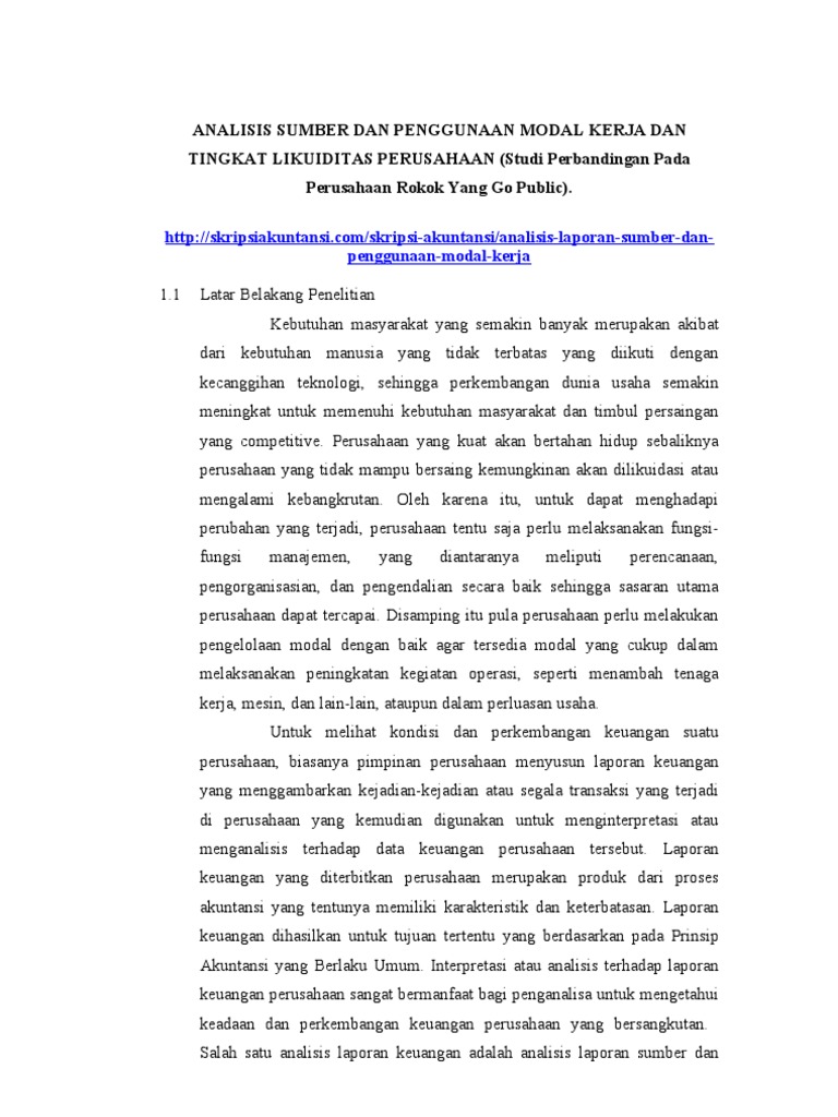 Contoh Skripsi Bab 1 Manajemen Keuangan Gagas Pedia