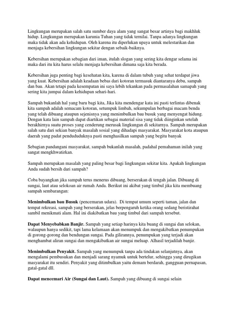 2 contoh teks eksposisi tentang sampah teks eksposisi adalah sebuah teks yang memaparkan atau menjelaskan sesuatu hal dengan sejelas jelasnya. Sampah berserakan teks eksposisi lingkungan sekolah singkat. Sebisa mungkin kami memahami keinginan kamu sehingga kami hanya memberikan contoh eksposisi.